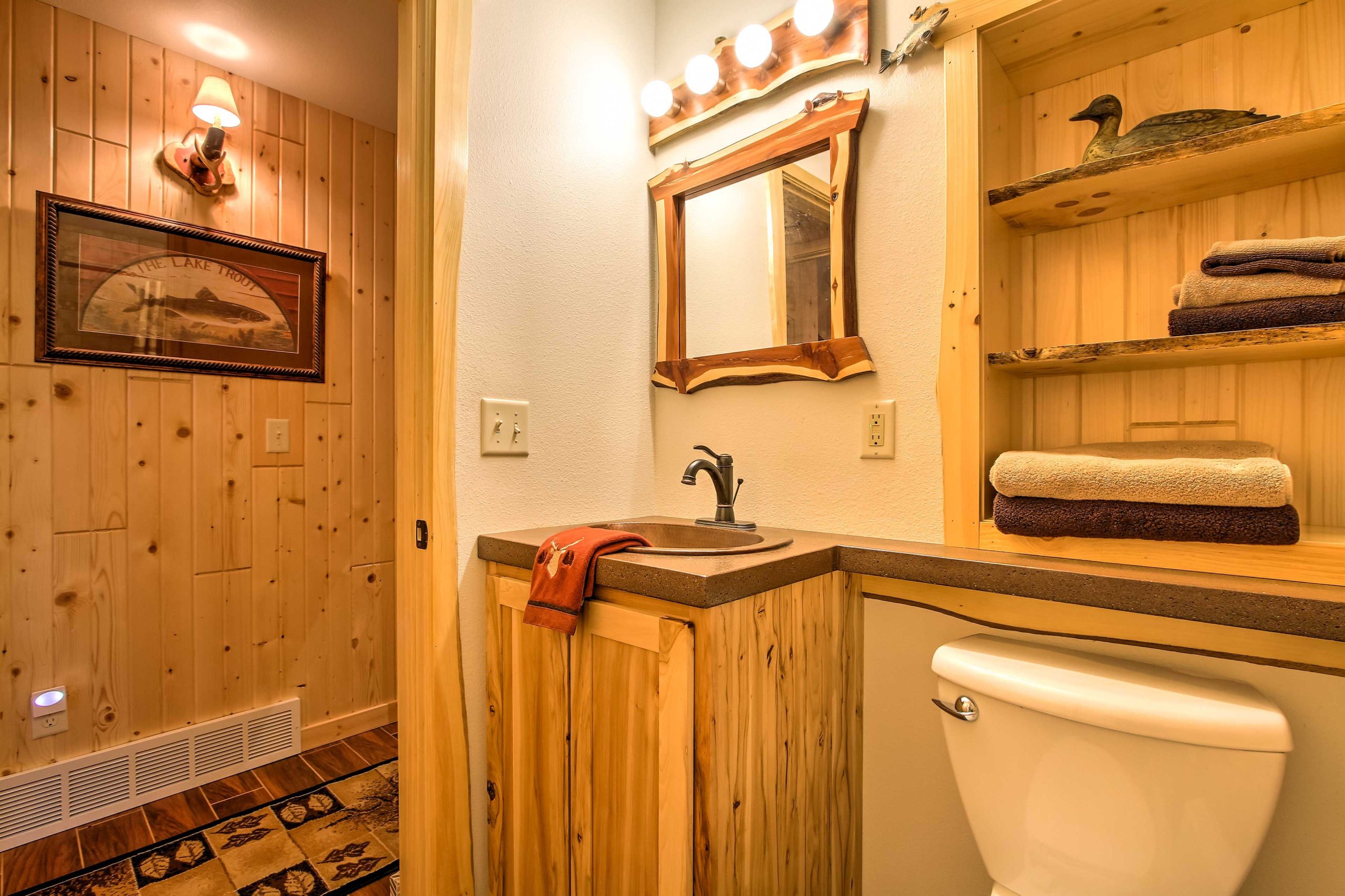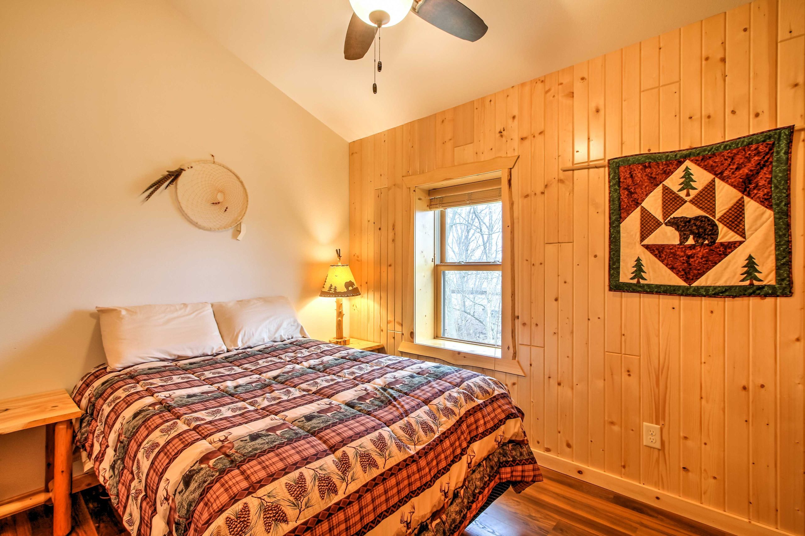 Updated to a certain extent, the bathroom is very welcoming both in terms of hardware and the great water pressure making the start of the day a refreshing and effortless experience. The room is perpendicular to the cabin yet it also faces the east which is always a great thing to look at when you just got up. The bathroom adds to the overall appeal of the cabin as a comfortable, self contained retreat.