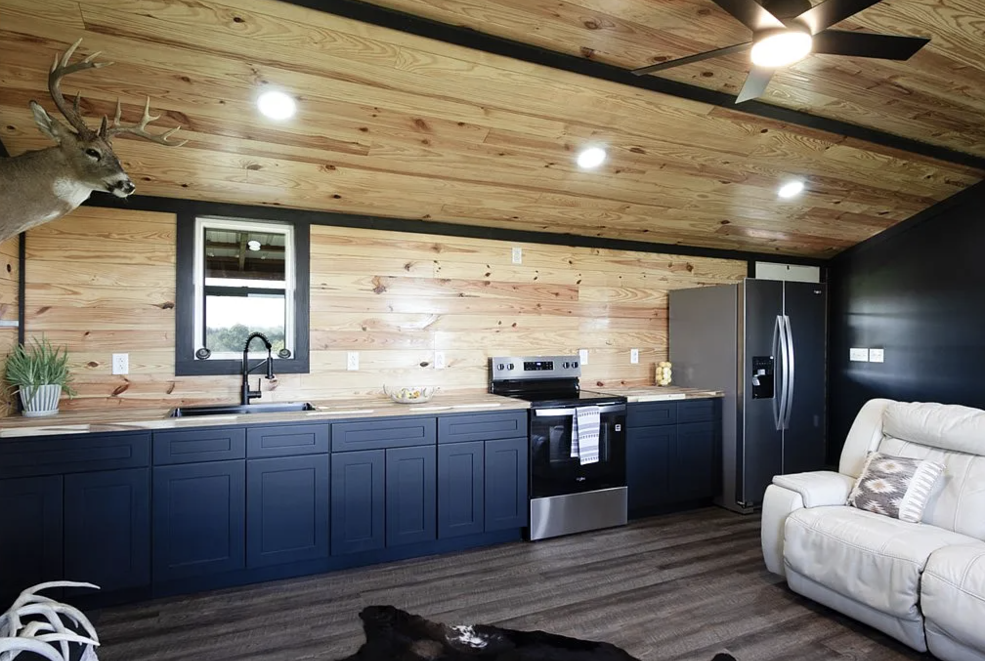 The kitchen here is full of old-timey charm and nevertheless gets the job done. As far as looks go, the warm colors along with the sleek elements give the place a very positive and lively vibe, but on the practical side of things, a range of different facilities and an extensive surface area for food preparation make the whole process of cooking very smooth and enjoyable. It literally does not matter whether you are making a quick snack before hitting the road or either preparing an elaborate meal to indulge in after the day spent in the woods, both options are very much feasible.